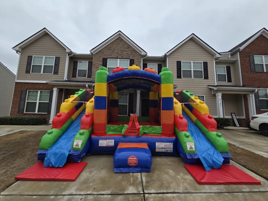 Bring block-style magic to any party with the Lego-Land Bounce House + Dual Slide. This Lego-inspired bounce house combines a roomy jumping area with a twin dry slide for nonstop action. Perfect for birthdays, school events, and backyard fun. Ideal for ages under 10 🎉🧩