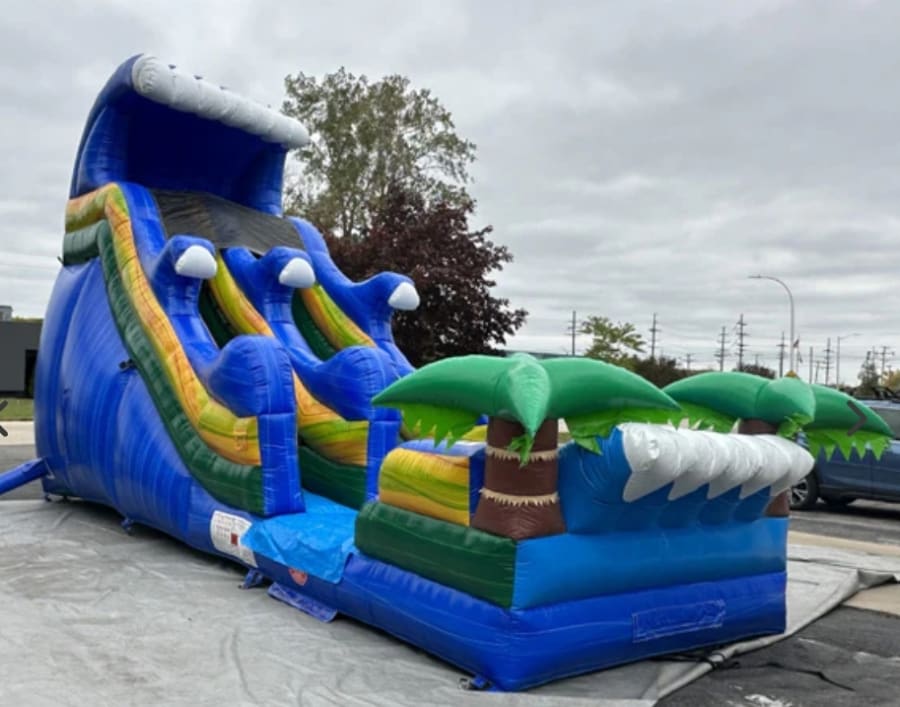 Get ready for an exhilarating day of fun and excitement with our 18 Foot Tidal Wave Water Slide! This impressive inflatable water slide is the ultimate addition to any summer event, providing hours of entertainment for kids and adults alike. Whether you're hosting a birthday party, family reunion, school function, or community festival, the 18 Foot Tidal Wave guarantees to bring the wow factor to your gathering.