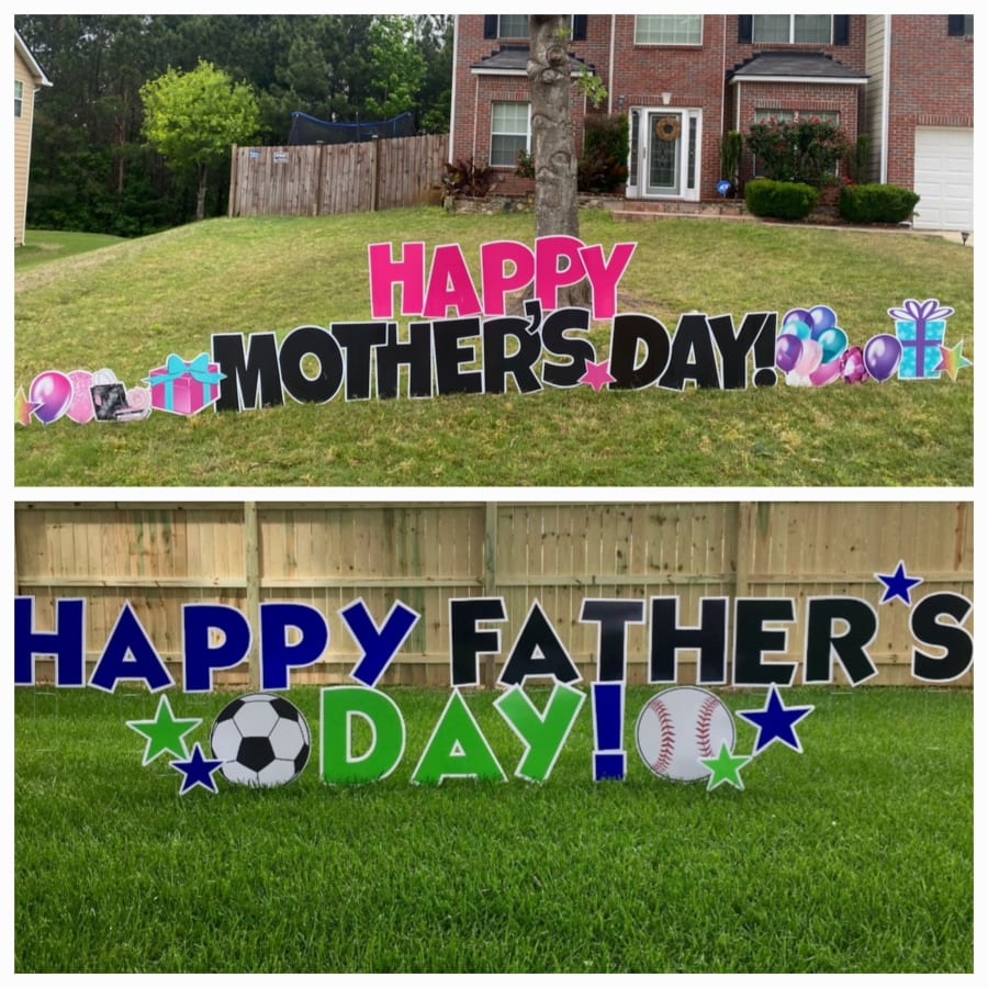Celebrate your father or mother with our large happy mother's and father's day yard card. Multiple color schemes to chose from.