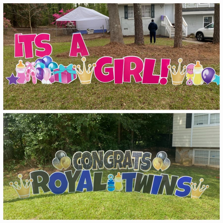 Help celebrate your memorable event by adding one of our baby shower or gender reveal signs. We have multiple signs to choose from or we can personalize a sign to fit your need.